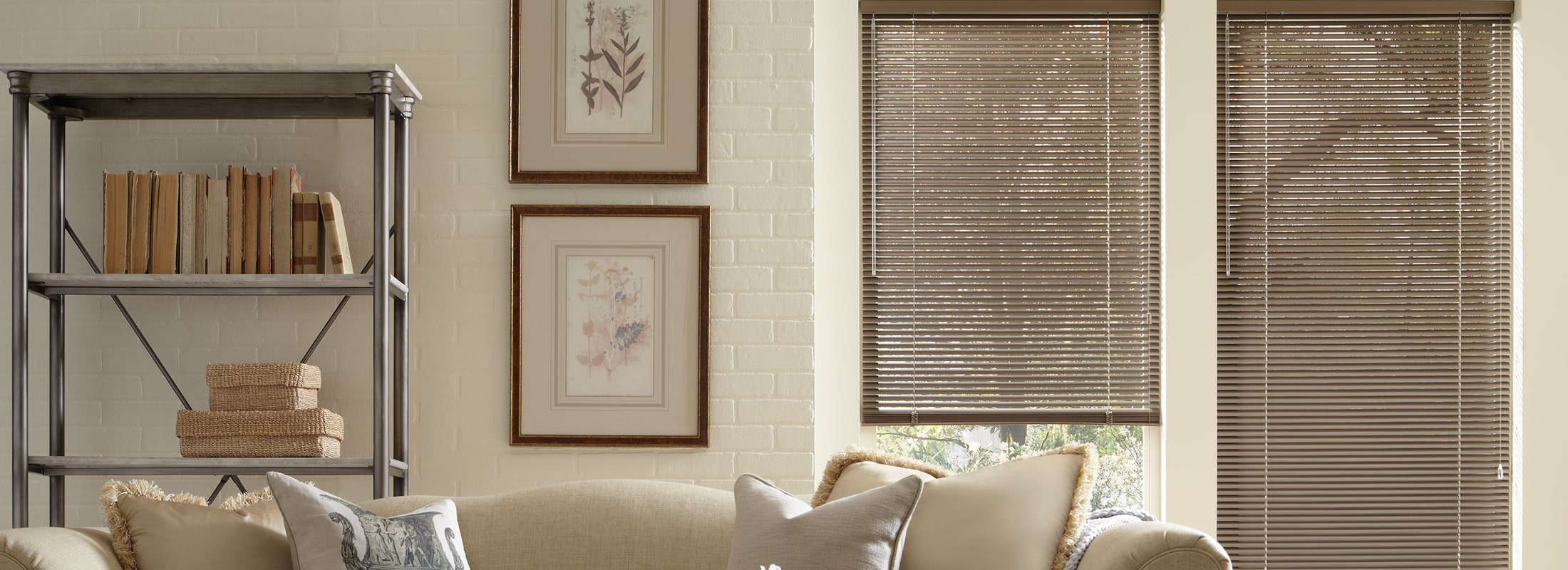 These affordable, synthetic, alternative wood blinds are an ideal choice for window coverings in rooms that may get exposure to water, such as the kitchen or bathrooms. This smart alternative to wood blinds has classic good looks that don't age. They are available with realistic TruGrain® finishes or a large selection of solid colors, and with operating and decorative upgrades available.